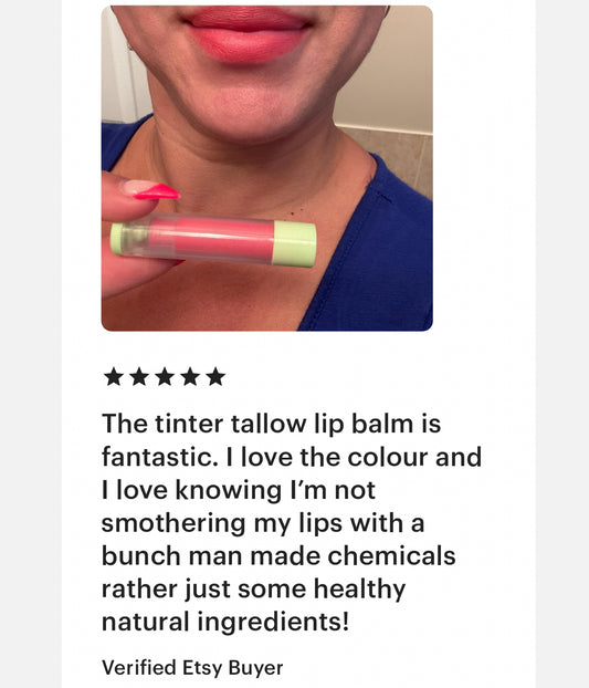 Regular price $8.00 USDRegular priceUnit price / perSale price $8.00 USDLips, cheeks, eye shadow. Tallow Lipstick Sunscreen Lip Balm All Natural Cheek Lip & Eye Tint Non-Toxic Makeup Sun Protection Lips for Carnivore gift for Mom gifts