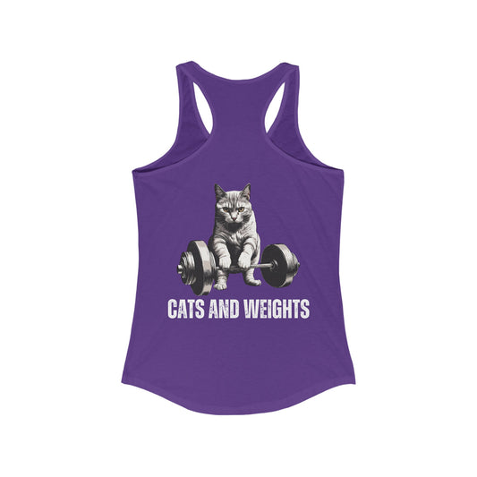 BACK DESIGN Cats and Weights Tank Top Cats Lifting Weights Powerlifting Kitty Tank Tops