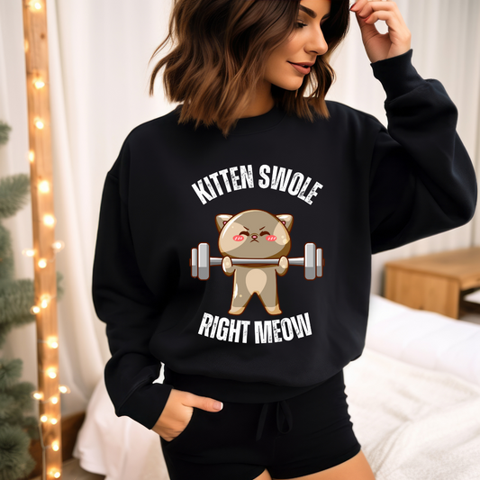 Kitten Swole Right Meow Sweatshirt Funny Cat Pun Sweatshirts Kitty Saying Quote for Gym Lover gifts for Cat Lover Sweatshirt Cute Pullover for Her