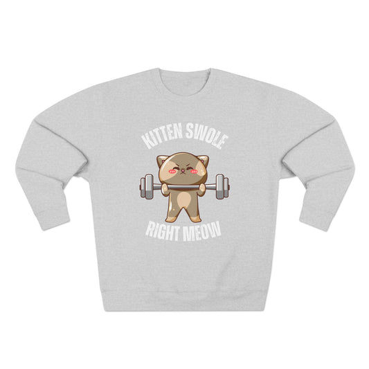 Kitten Swole Right Meow Sweatshirt, Cat Lover Gift, Funny Animal Sweater, Pet Owner Jumper, Cute Kitty Top, Workout Pullover