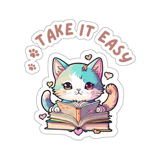 Cat Sticker for Book Lover gifts for Bookworm Cat Lady gift Cats stickers for Cat Lovers Cat Mom Chill Kitty Take It EASY Relax Bookish