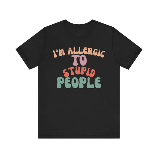 Funny Groovy Unisex Tee, Allergic to Stupid People T-Shirt, Humor Graphic Shirt, Sarcastic Tee, Vintage Style Top