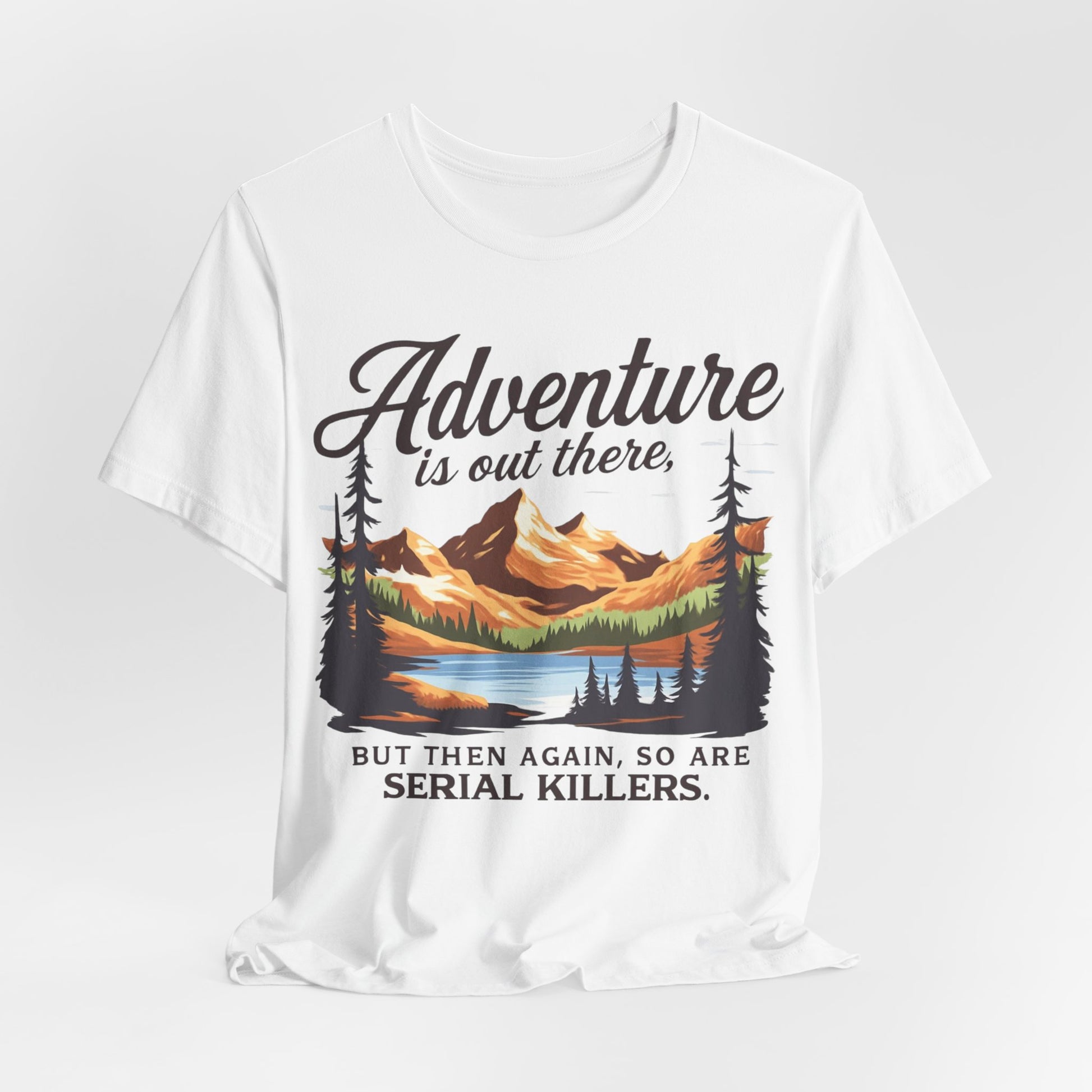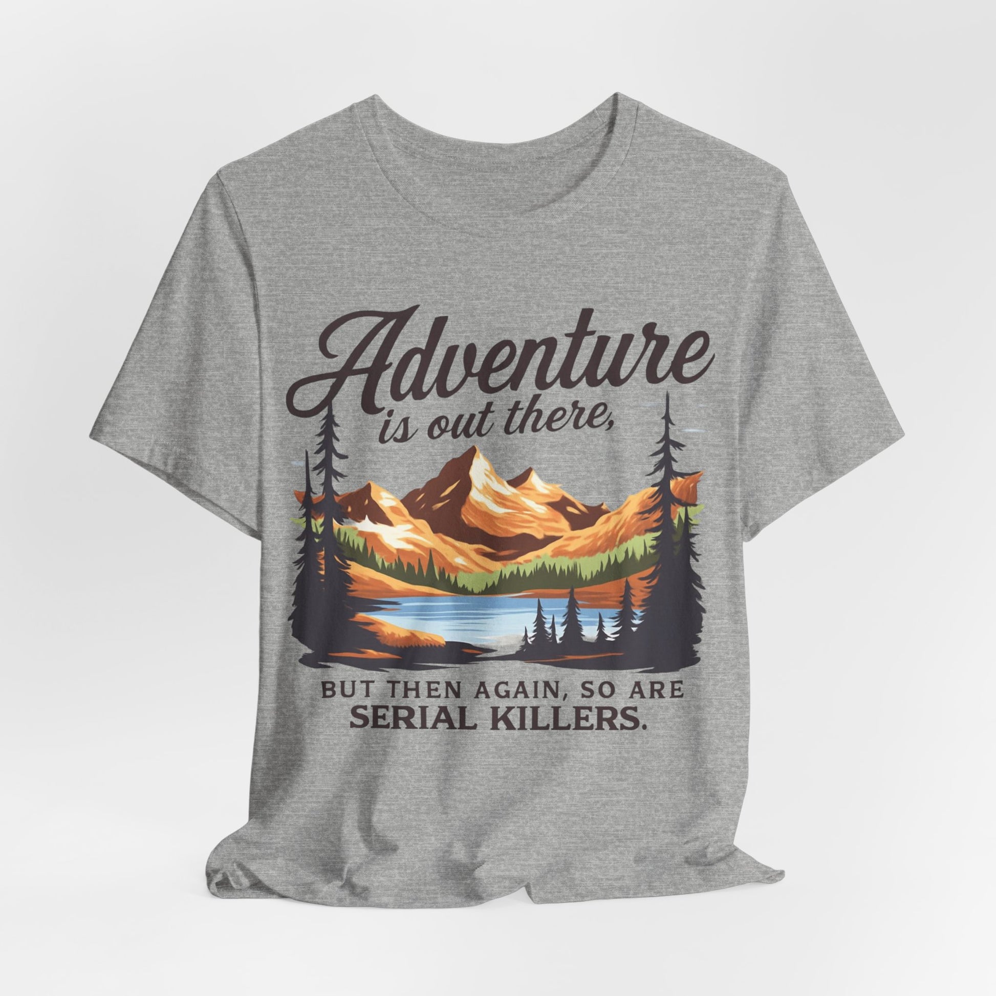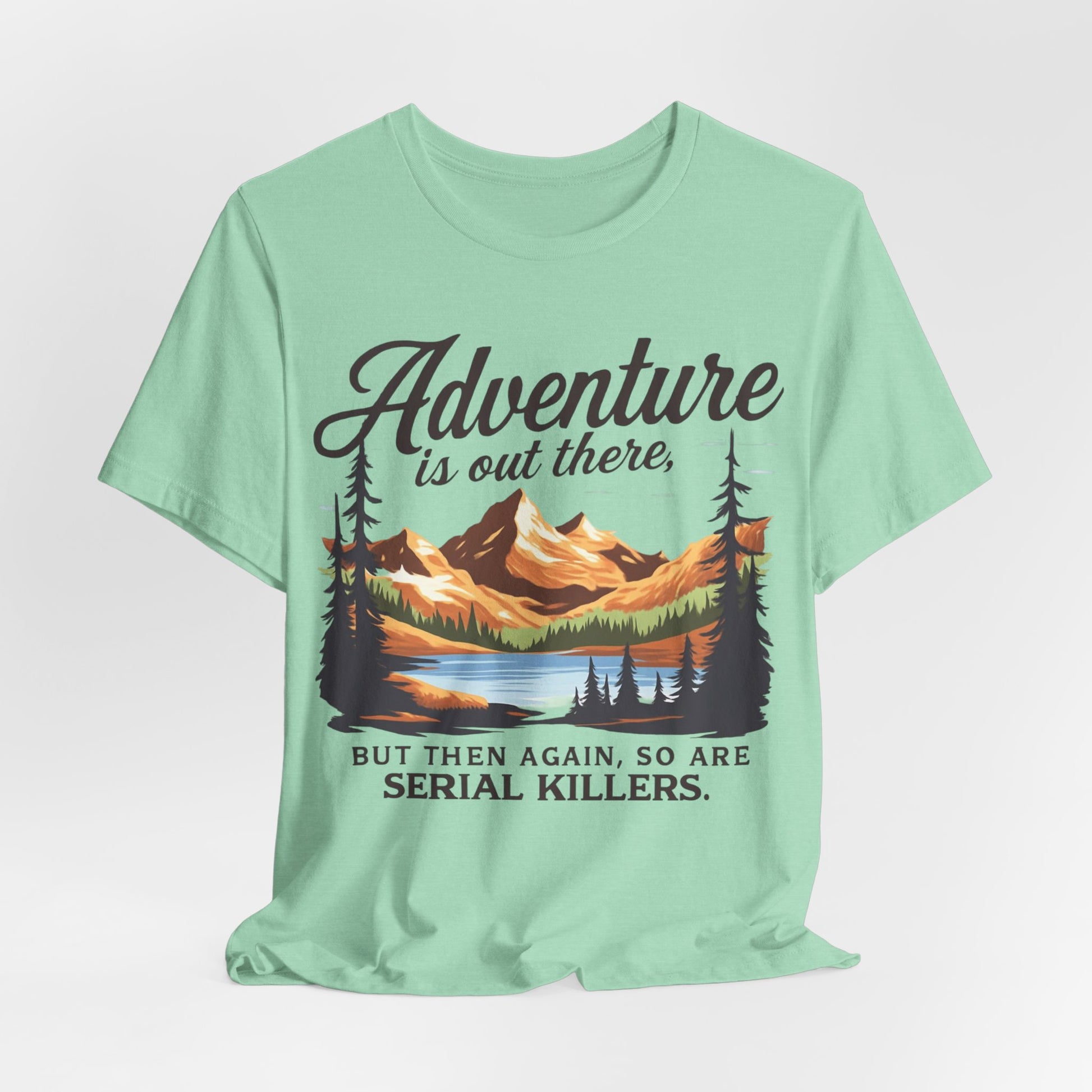 Adventure is Out There Unisex Tee, Murder Mystery Shirt Wanderlust Shirt, Outdoor Graphic Tee, Traveler Gift, Nature Lover Top