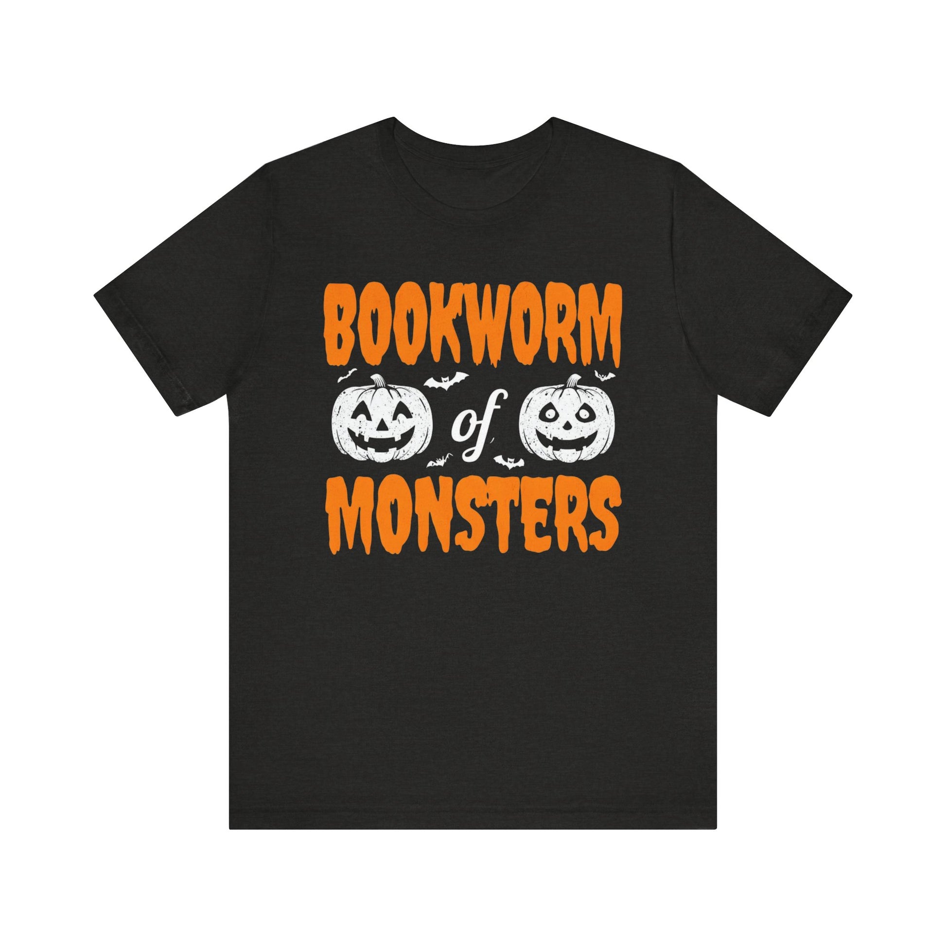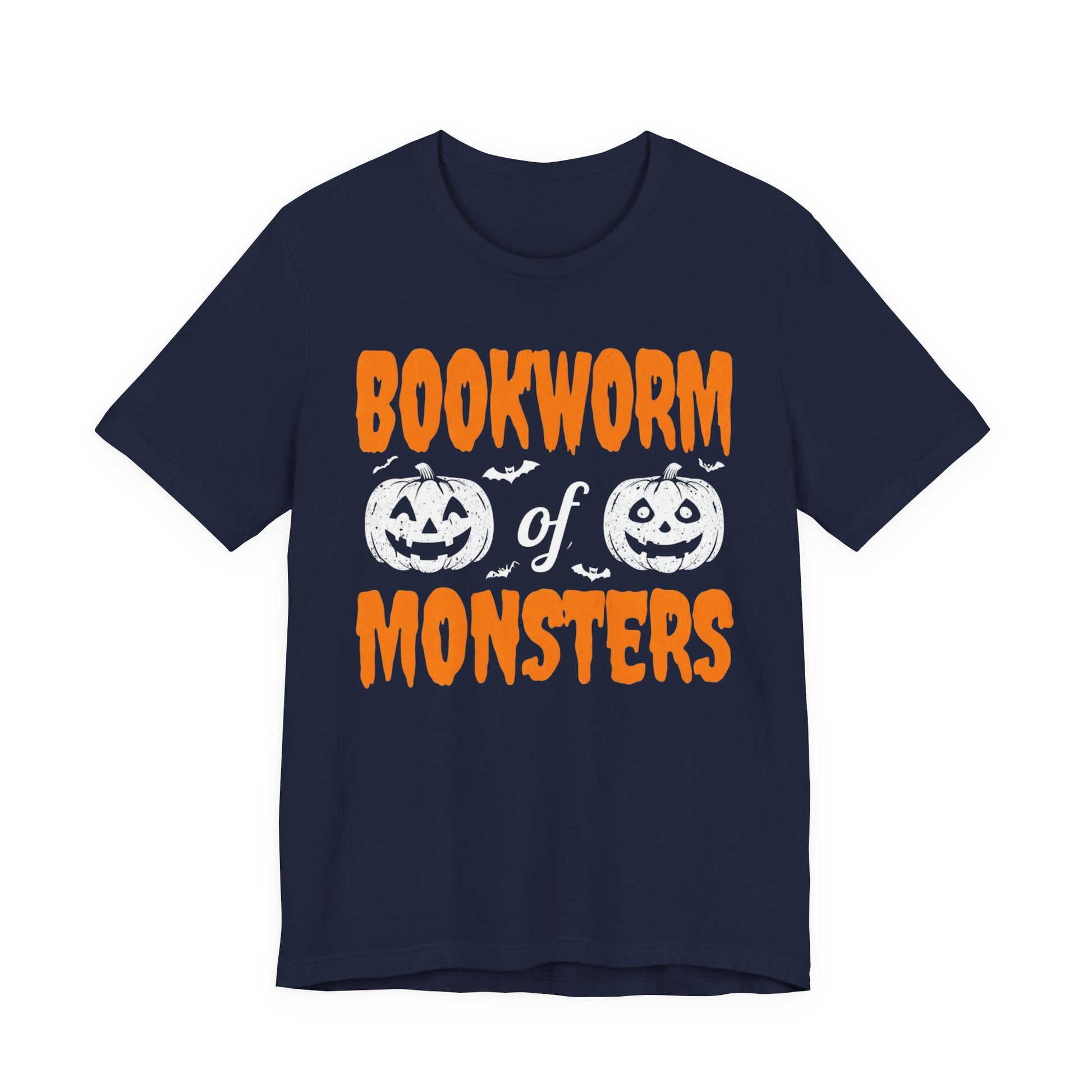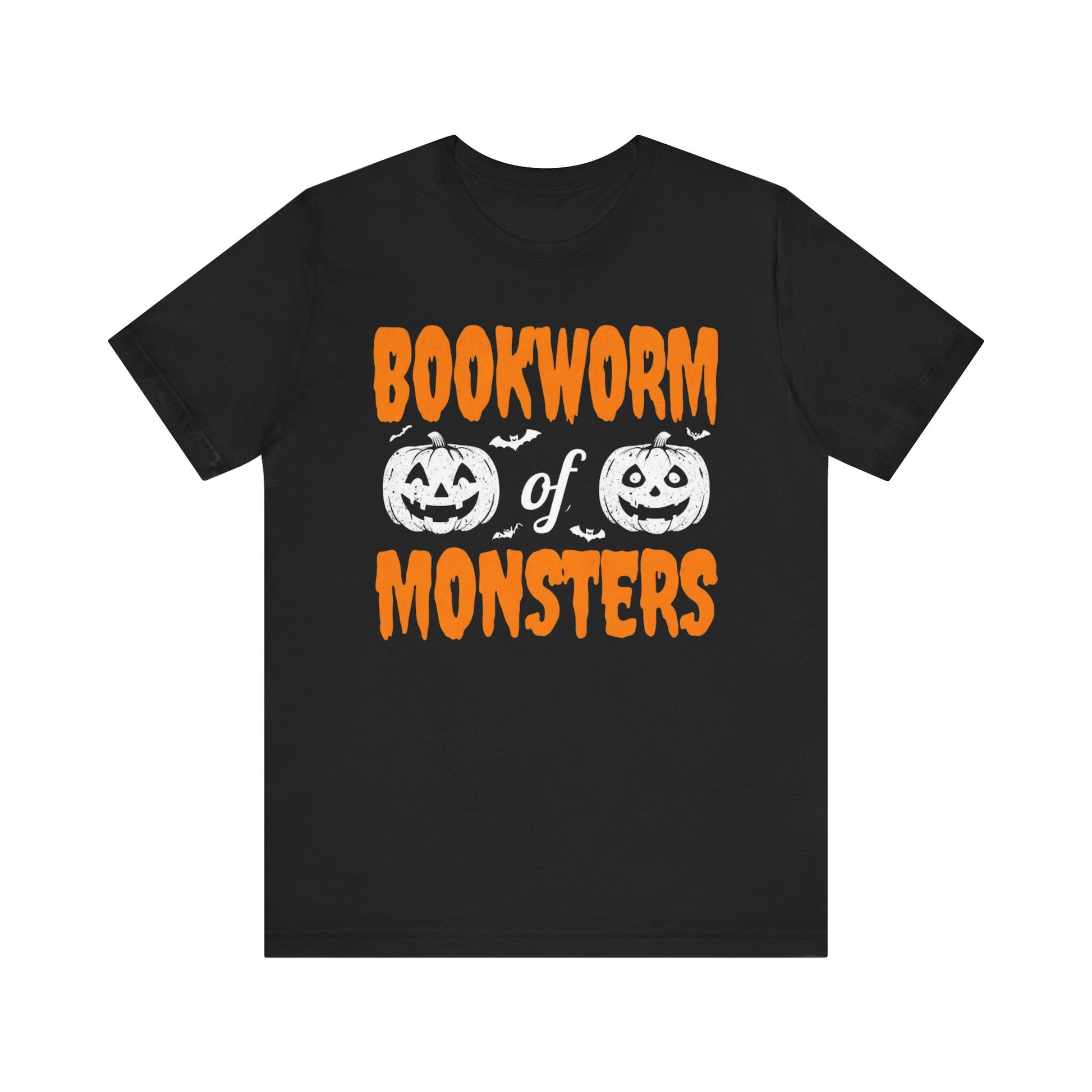 Bookworm of Monsters Halloween Tee, Reading Lover T-Shirt, Unisex Jersey Shirt, Halloween Book Shirt, Monster Lover Gift