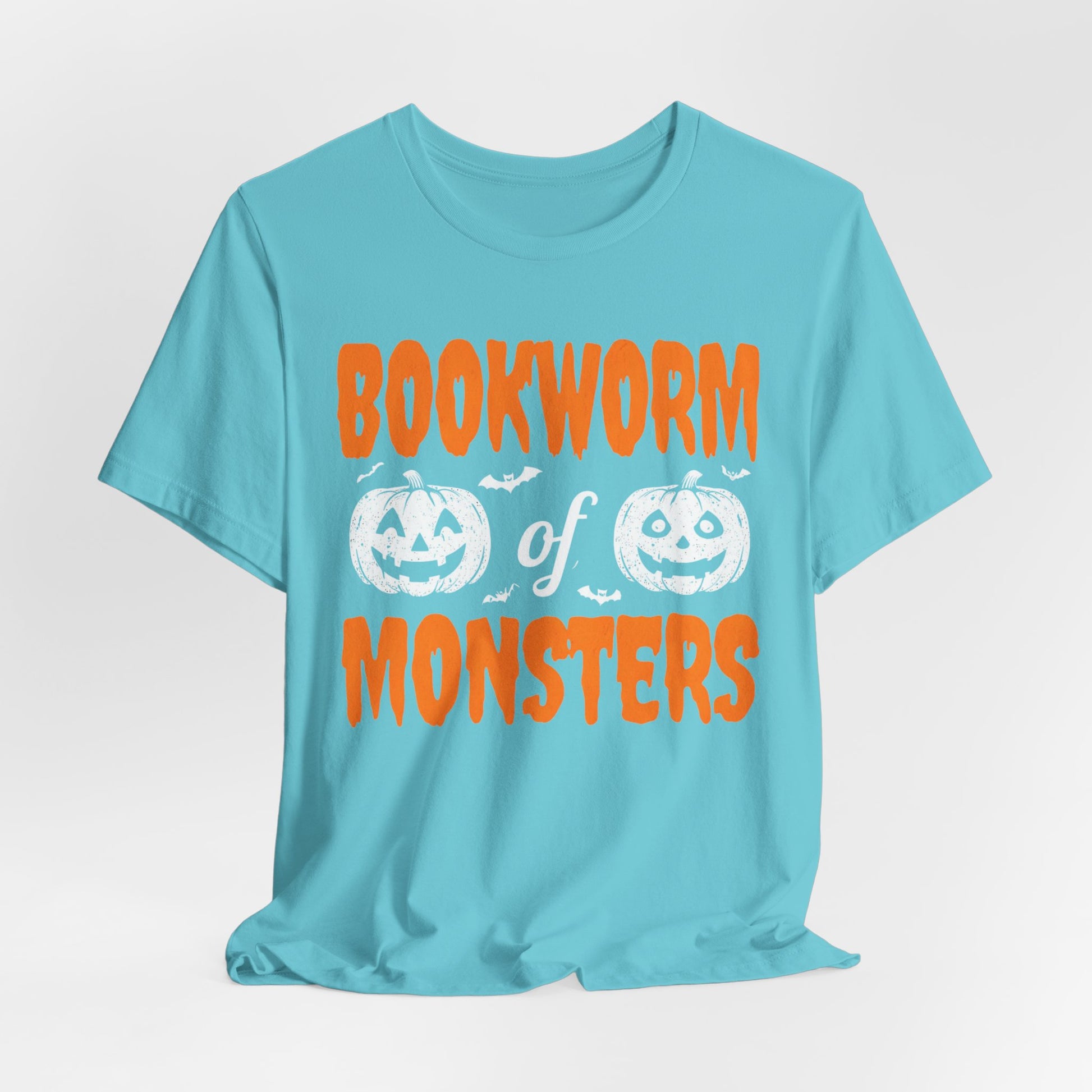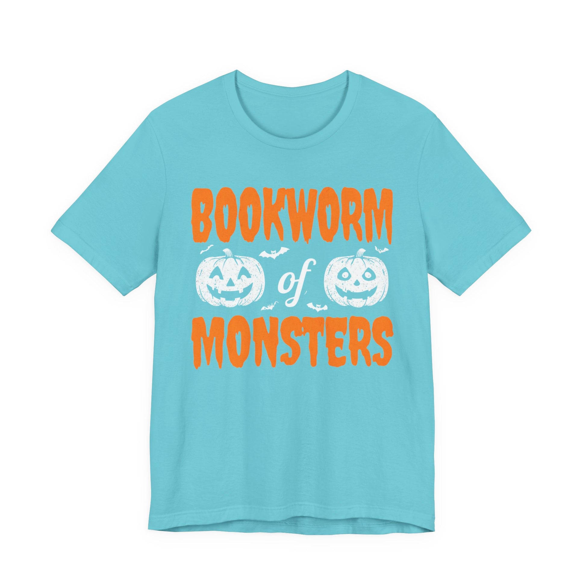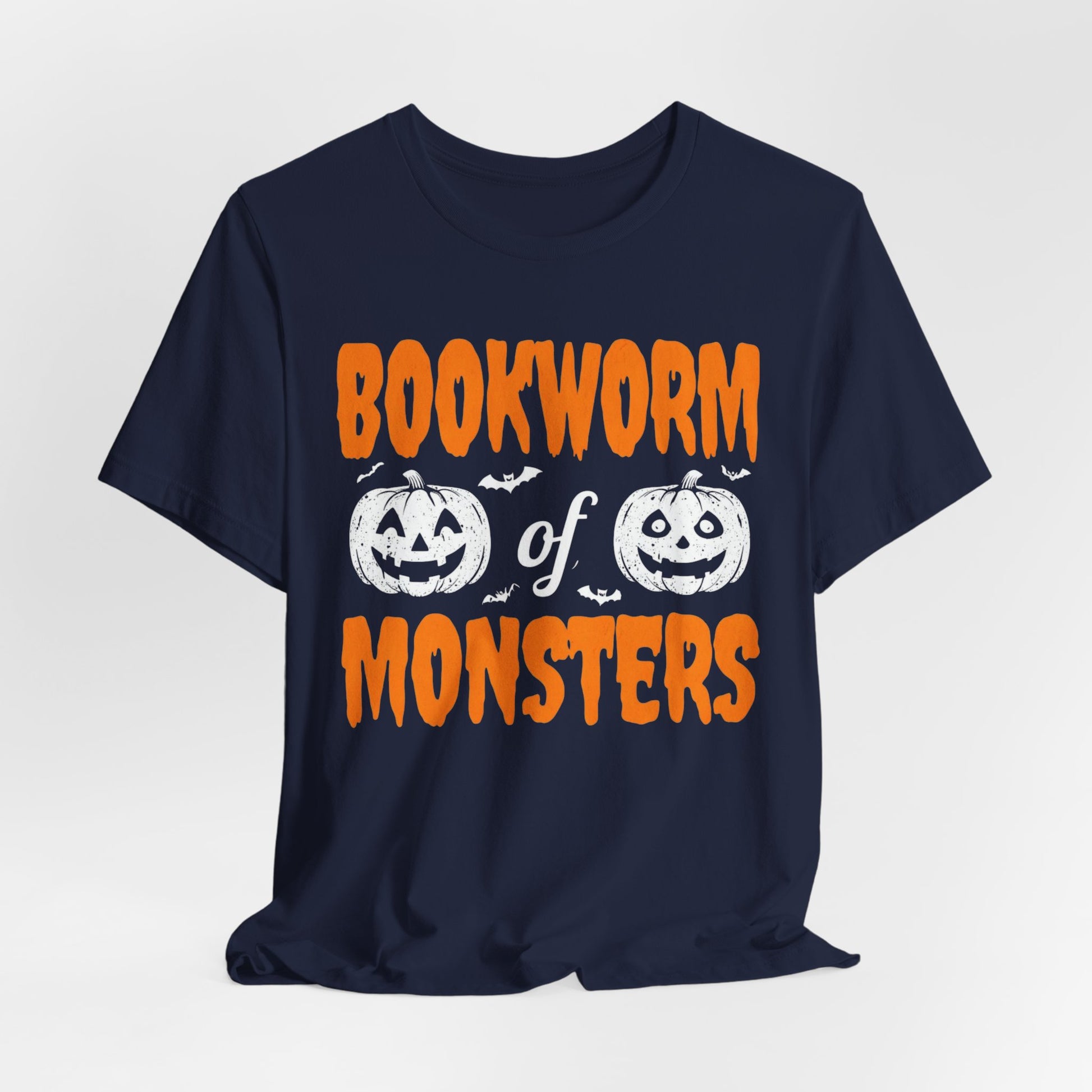 Bookworm of Monsters Halloween Tee, Reading Lover T-Shirt, Unisex Jersey Shirt, Halloween Book Shirt, Monster Lover Gift