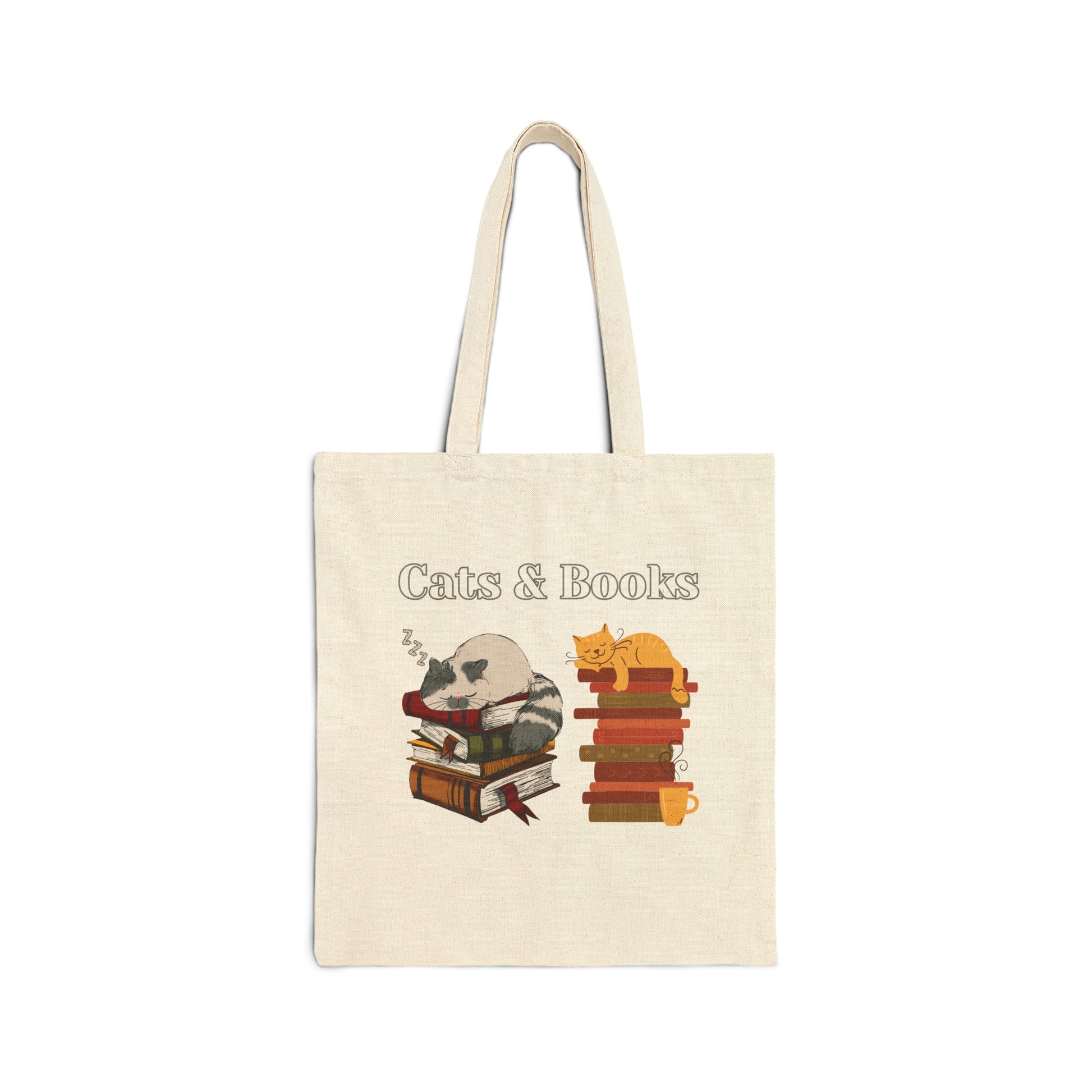 Cats and Books Tote Bag for Reading Lovers gift for Bookworm gifts for Book Lover Book Bags for Cat Lover gift for Moms Cat Mom Grocery Bags